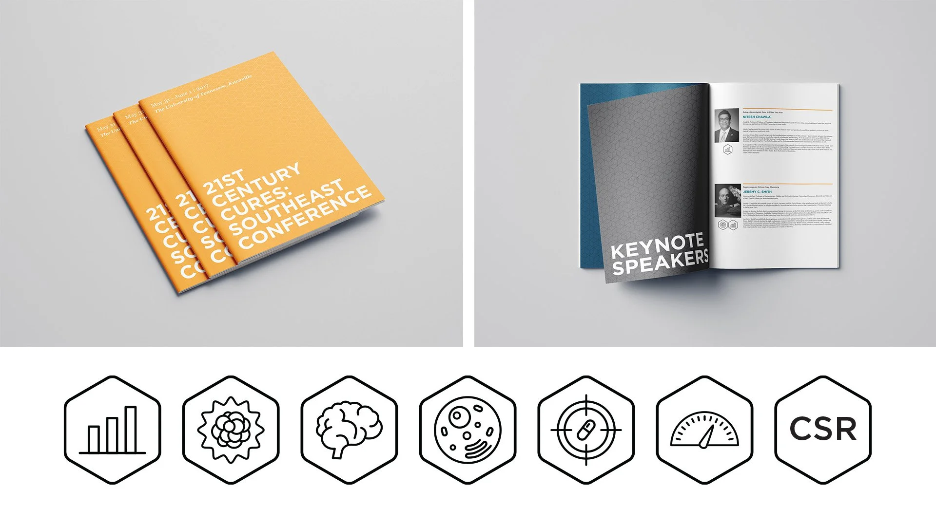 Helped the University of Tennessee College of Engineering create a brand identity for their HITS program. This included working on a brand mark making signages to be placed in the Engineering building. Separately, worked on a booklet for the 21st Century Southeast Conference as a freelancer